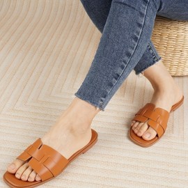 Women's Lightweight Flat Slide Sandals - Comfortable Open Toe Slip On Casual Walking Shoes