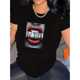 Faith Quote Print Crew Neck Graphic T-shirt, Solid Short Sleeve Fashion Loose Tee, Women's Tops