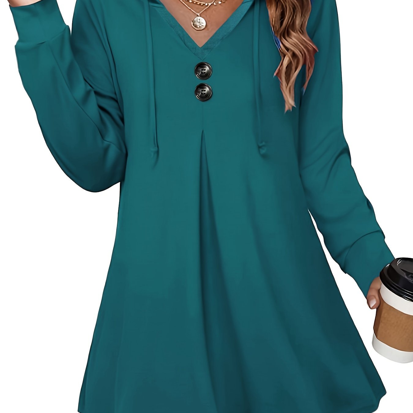 Button Front Drawstring Hoodie, Casual Long Sleeve Hoodies Sweatshirt, Women's Clothing