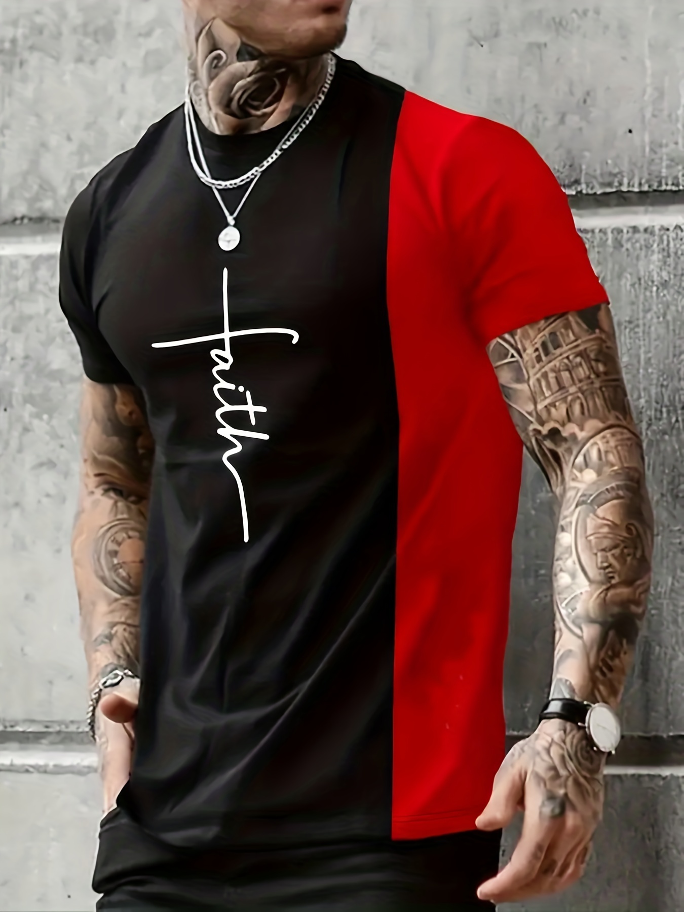 Faith Color Block Print T Shirt for Men - Casual Short Sleeve Tee for Summer, Spring, and Fall - Great Gift Idea