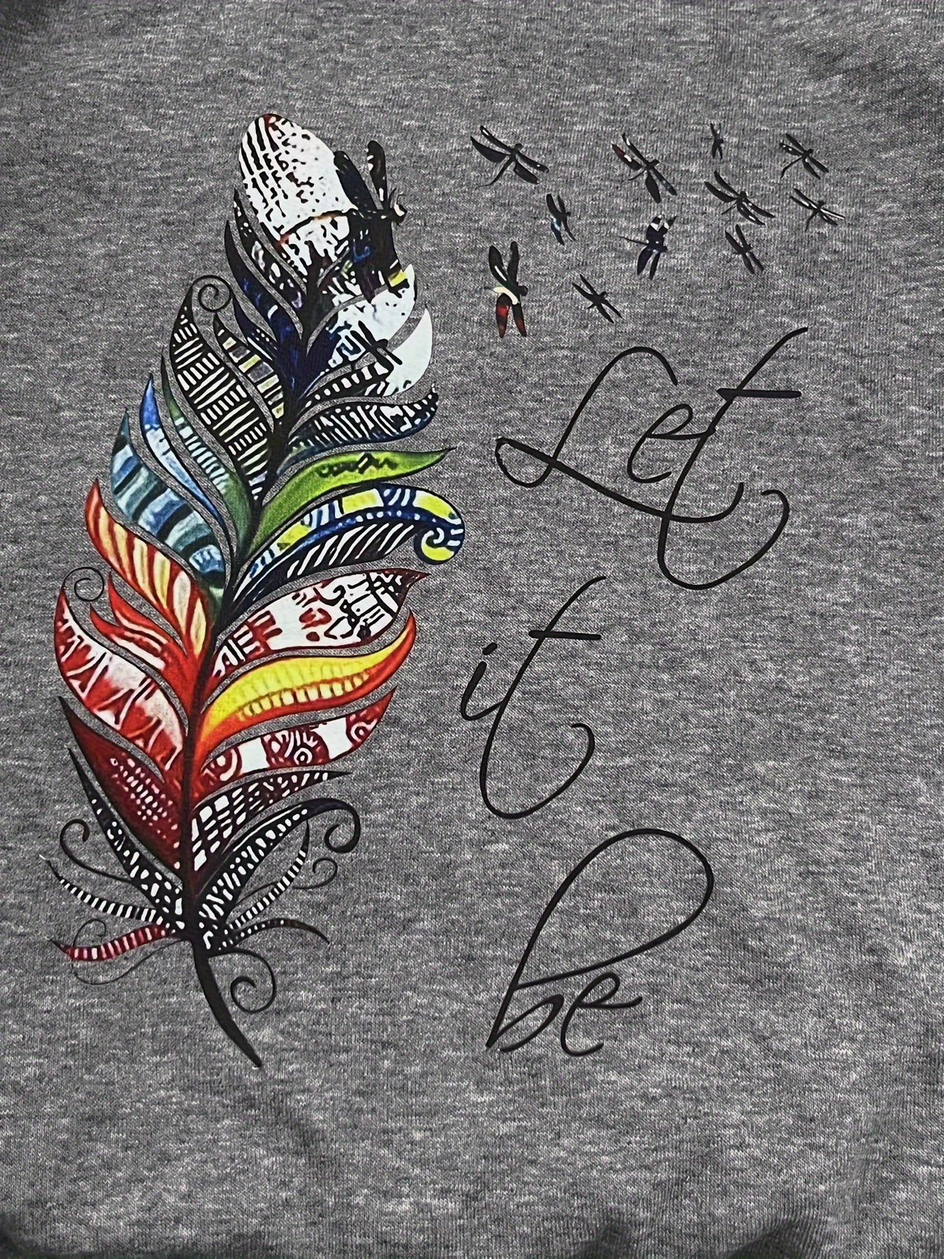 Feather & Letter Print Sweatshirt, Casual Crew Neck Long Sleeve Sweatshirt, Women's Clothing