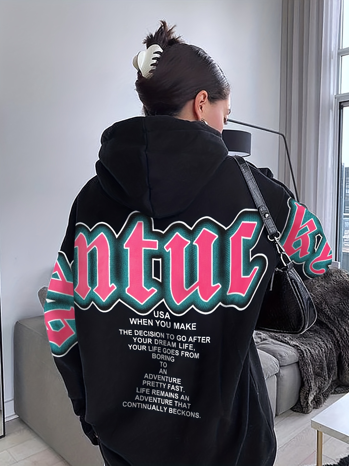 Letter Print Loose Hoodie, Casual Long Sleeve Hoodies Sweatshirt, Women's Clothing