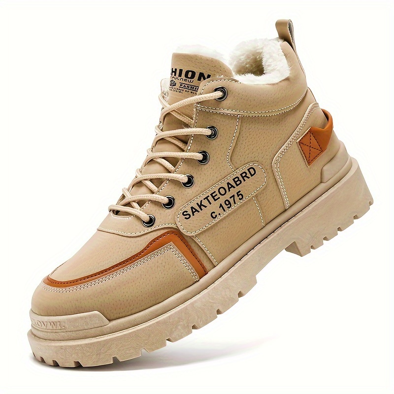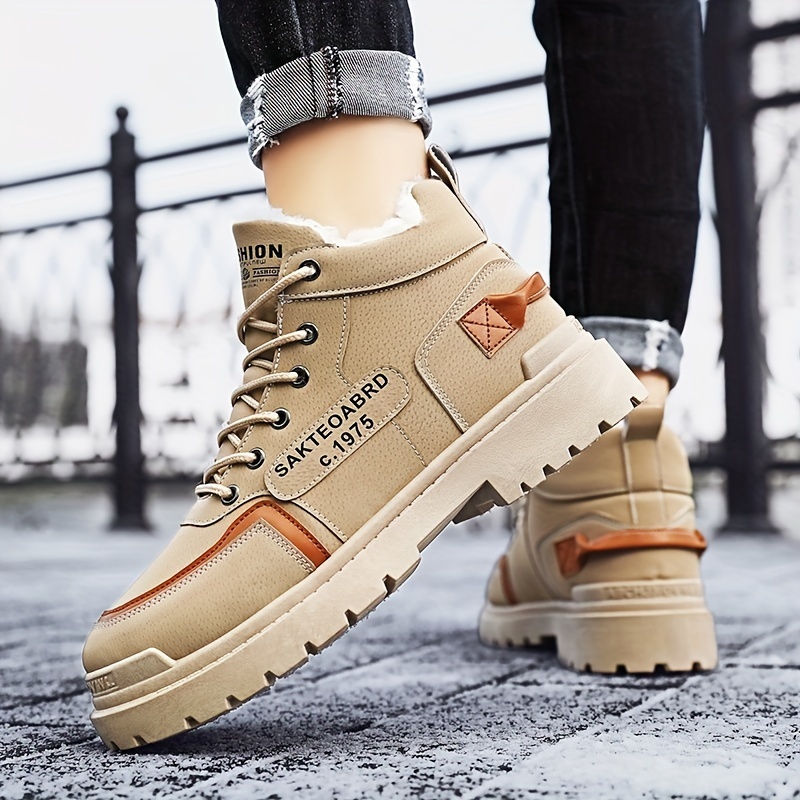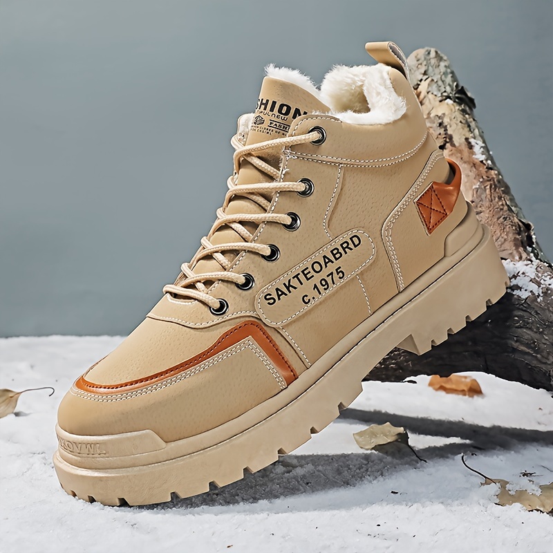 Men's Sturdy Work Plush-lined Boots Lace-up Boots - Comfortable And Thermal Winter Shoes Sneakers