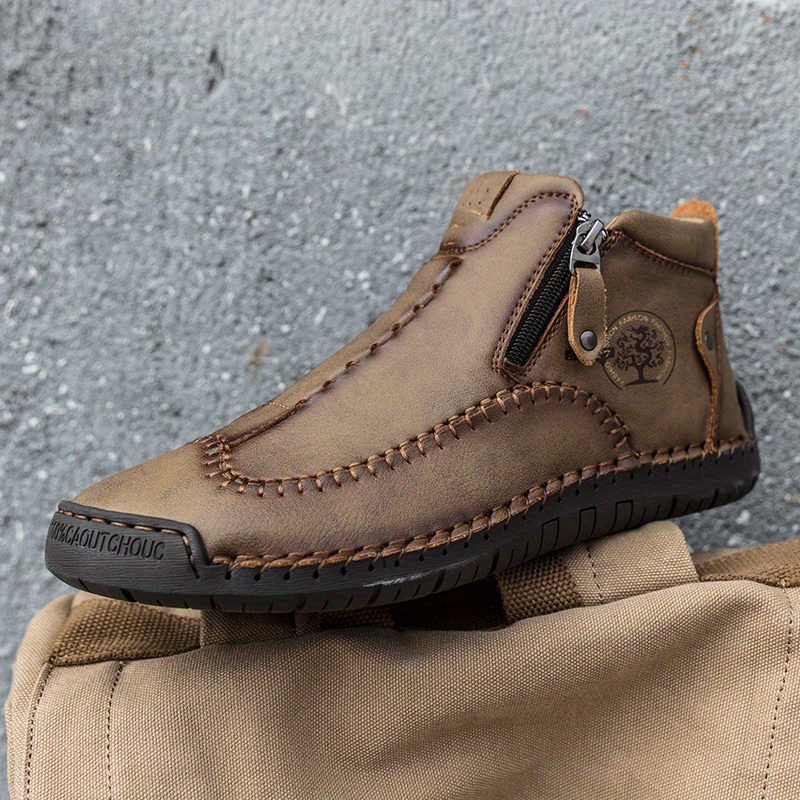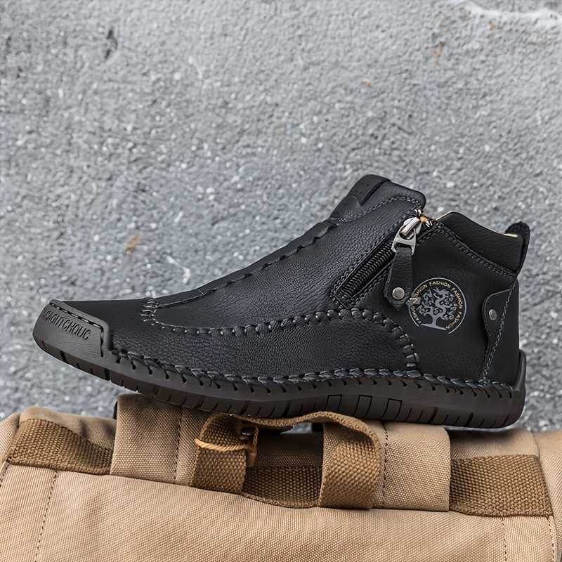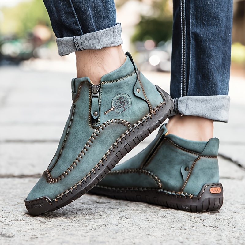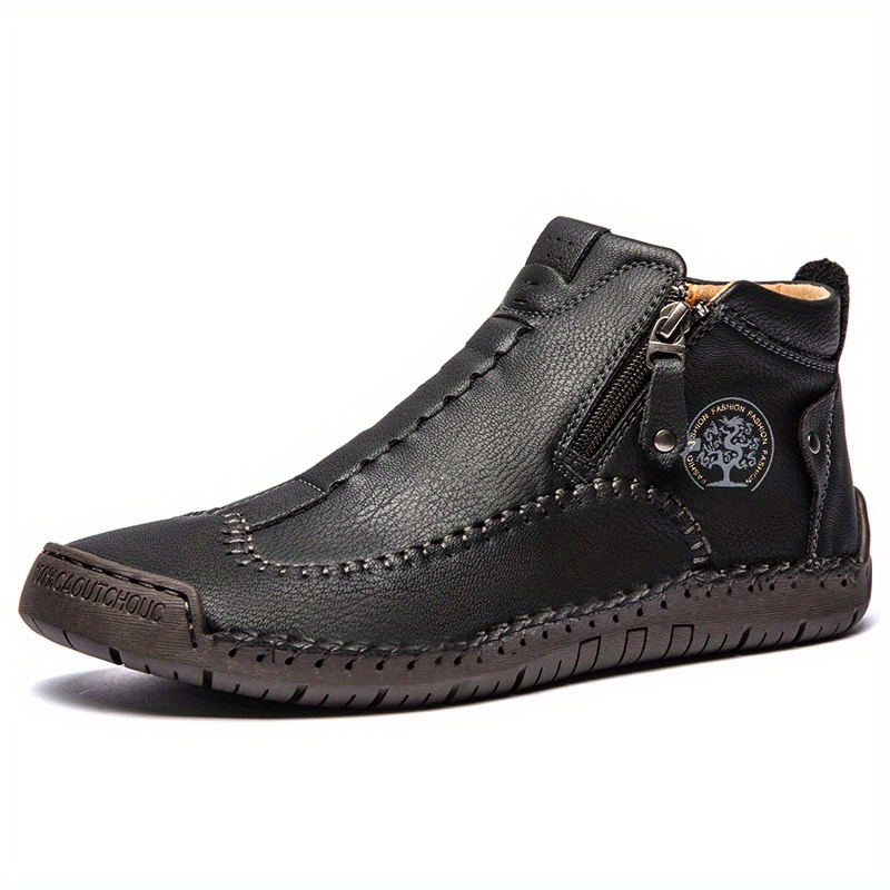 Stylish Men's Lightweight Handmade PU Boots with Zipper - Comfortable and Durable Footwear for Everyday Wear