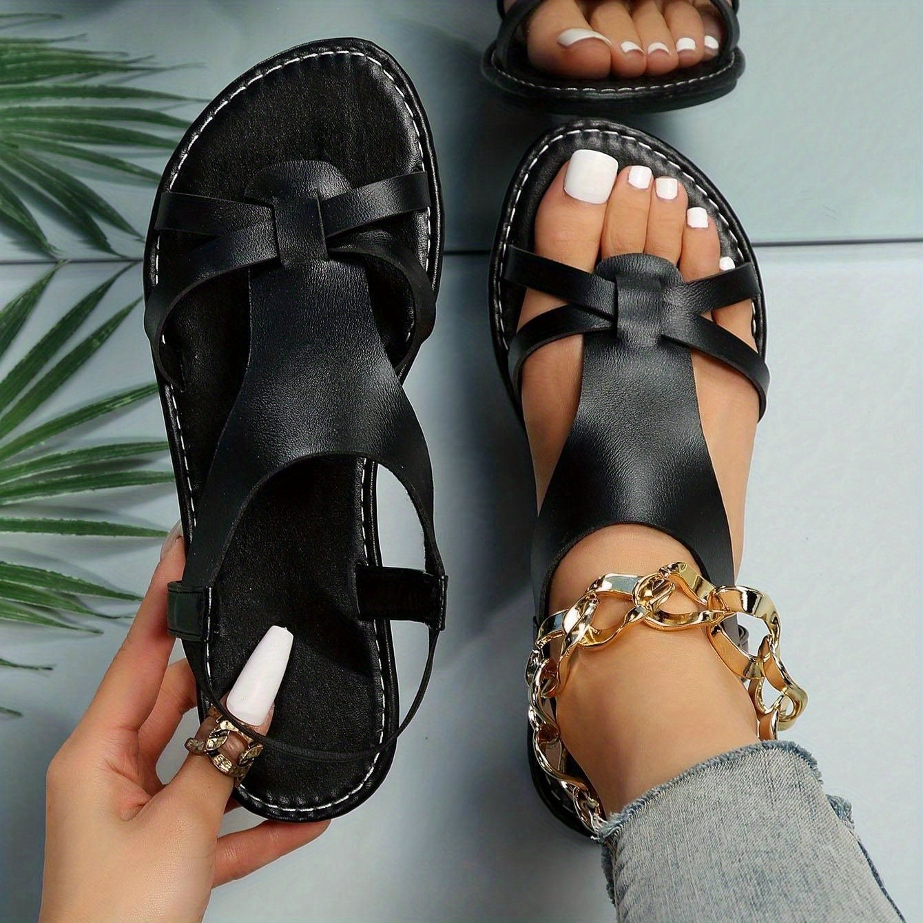 Women's Casual Flat Sandals, Cross Strap Open Toe Elastic Strap Slip On Shoes, Casual Going Out Beach Sandals